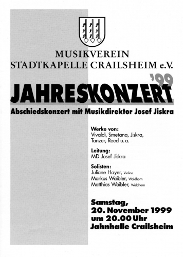 Stadtkapelle Crailsheim – Jahreskonzert und Abschiedskonzert MD Josef Jiskra